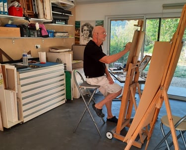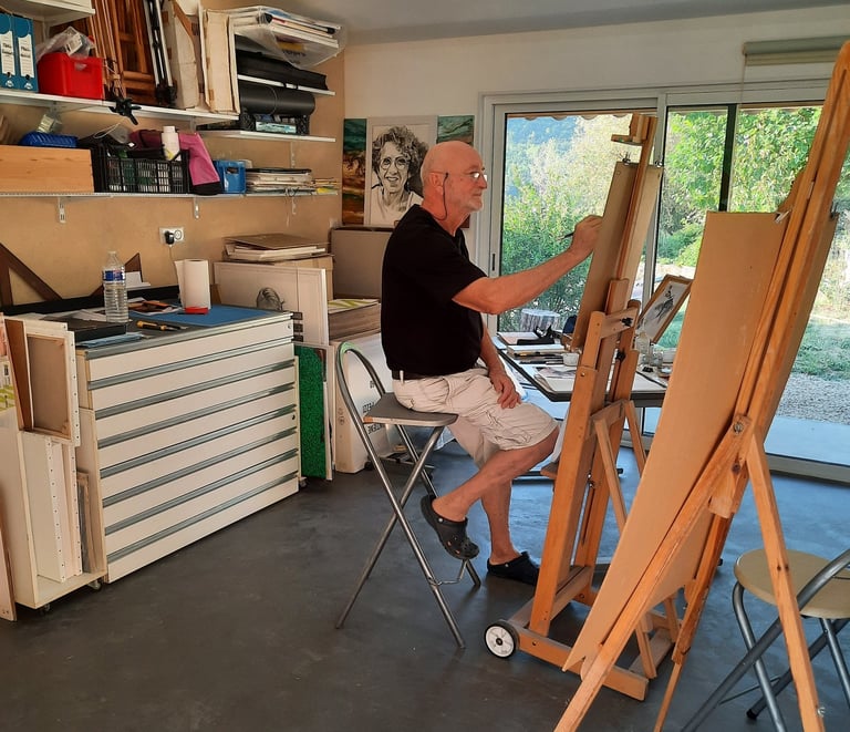 Maintenant à la retraite de ses activités professionnelles de graphiste, Paul se consacre entièrement aux portraits et à la peinture.
